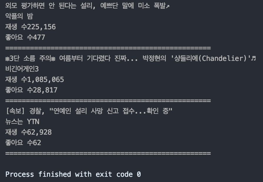이때, 제목뿐 아니라 채널명, 조회수, 좋아요수까지 가져와보자.
