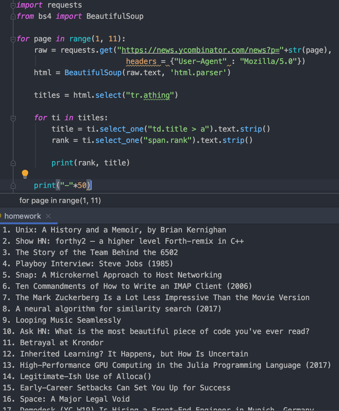 raw = requests.get("https://news.ycombinator.com/news?p="+str(page),
