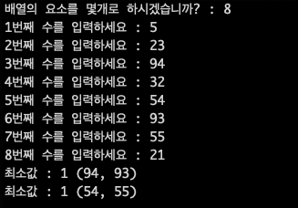 // 배열의 요소 가운데 최소 거리를 구하기 위한 부분 -------------------------
