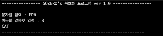 System.out.print("---------------- SOZERO's 복호화 프로그램 ver 1.0 ----------------\n\n");