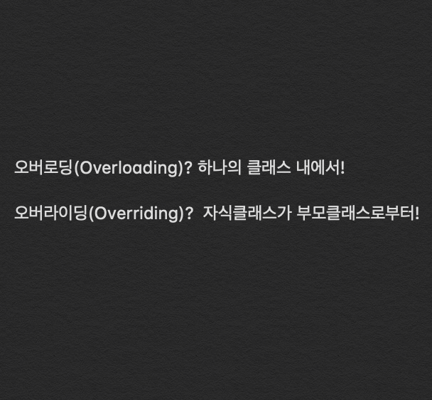 - 결론은 오버로딩과 오버라이딩은 아주 아예 다른 것이다.