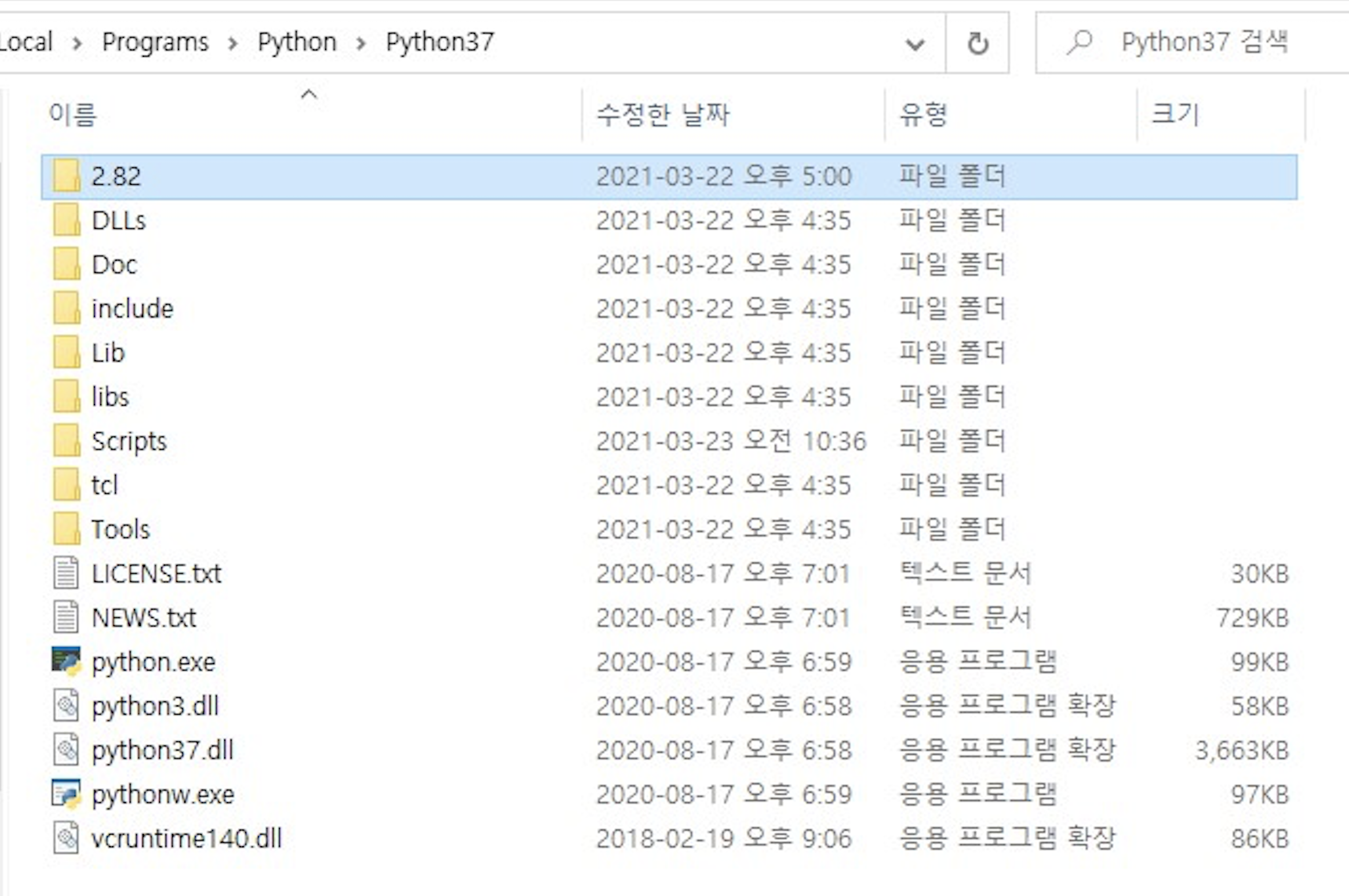- 여기 있는 2.82 폴더를 상위 폴더인 Python37폴더에 옮겨준다.