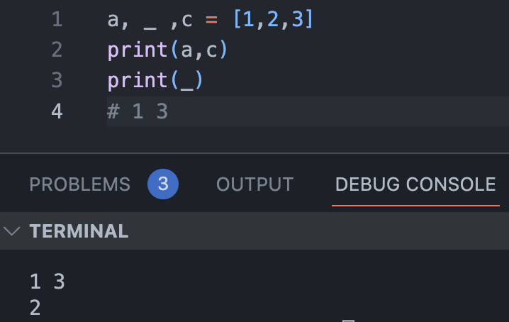 만약 우리가 두번째 요소인 2를 사용할 필요가 없다면 _ 를 통해 해당 요소를 무시할 수 있을겁니다.